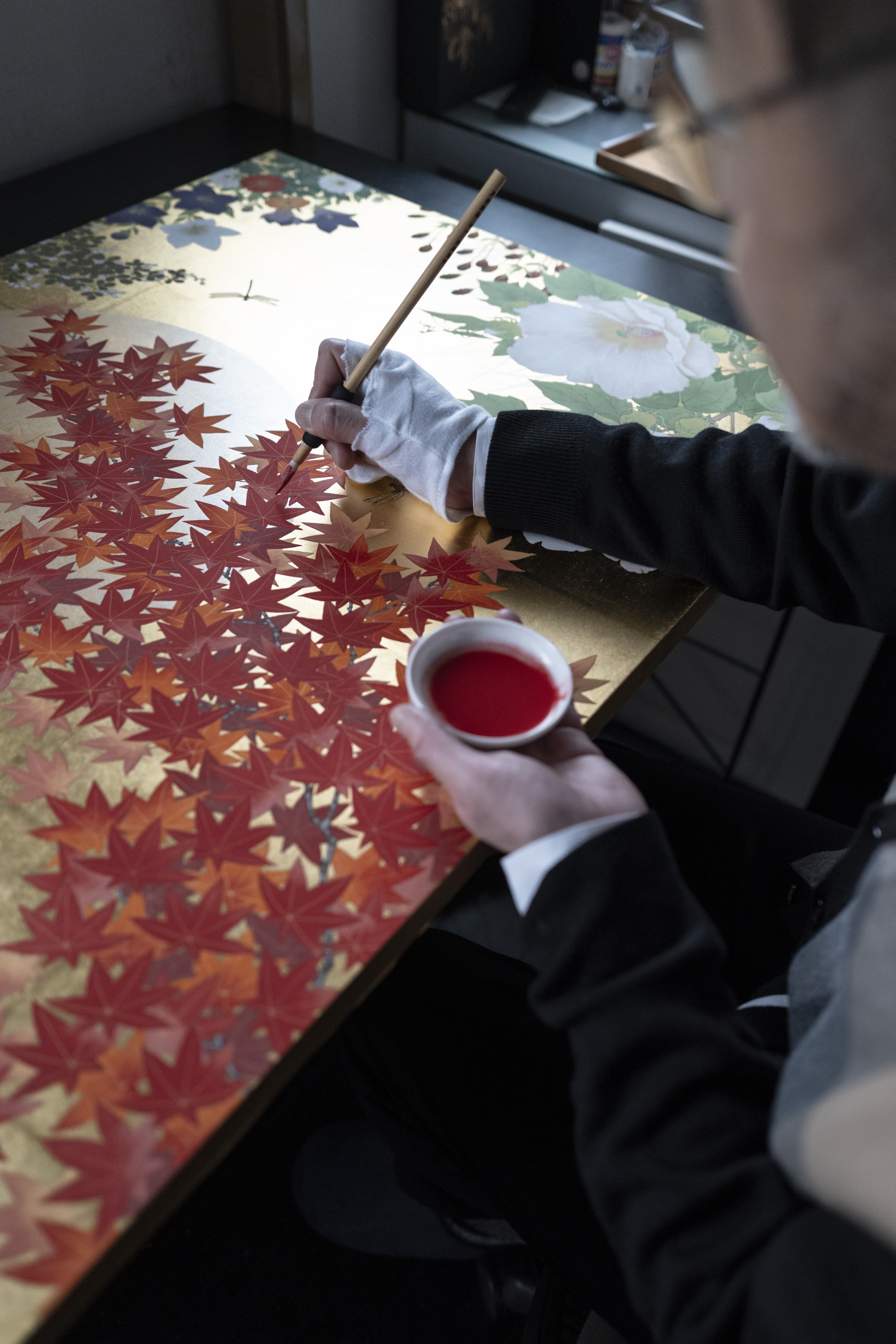 日本画家・中野大輔は、数百年にわたり受け継がれてきた日本画の技法を礎に、屏風をはじめとした支持体へ光のうつろいと生命の躍動を封じ込め、時に幻想の植物に覆われた楽園的ランドスケープを立ち上げる。歴史に裏打ちされた技術とマテリアリティを、現代の視覚言語へと昇華させる前衛的なアーティストである。