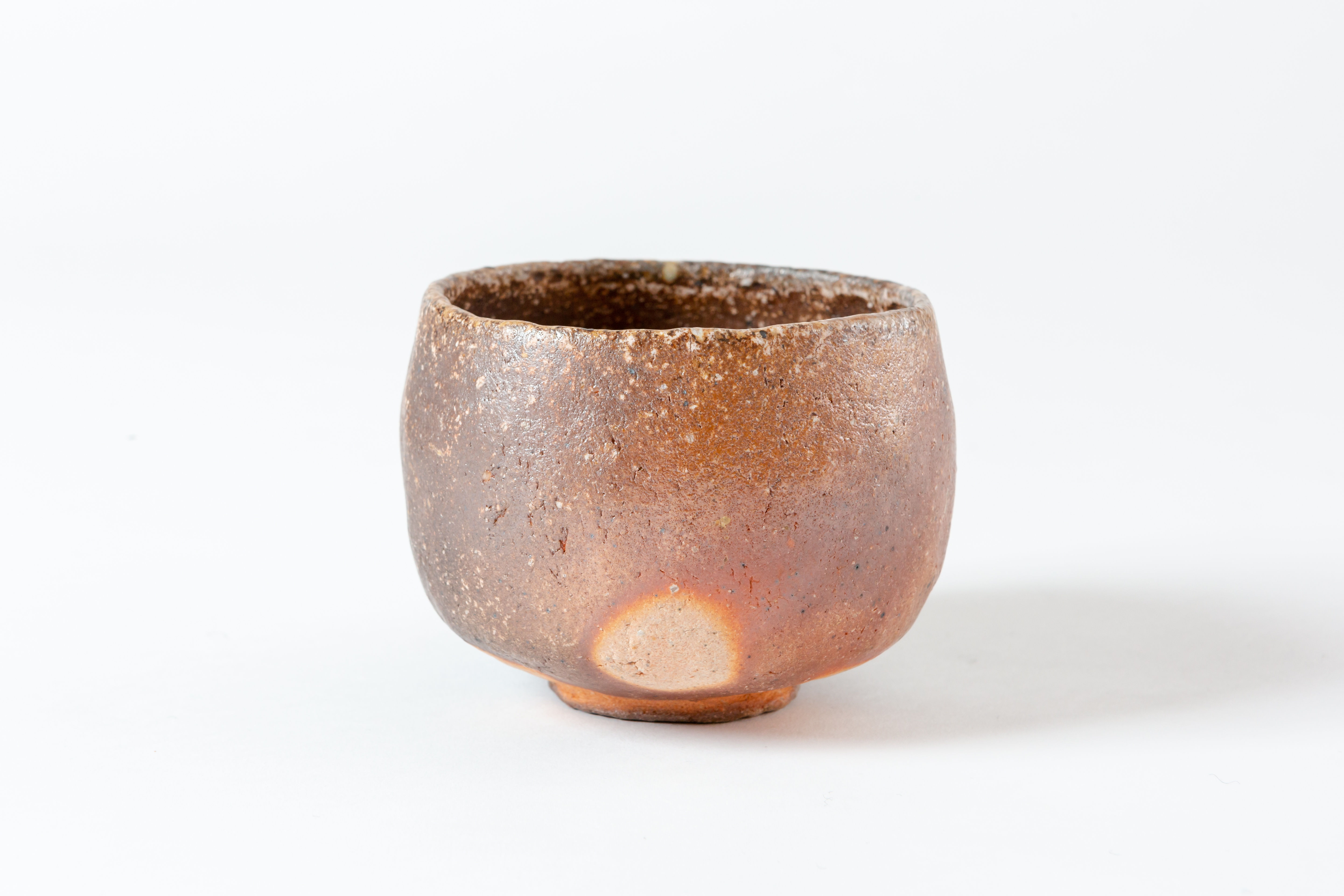 Yakishime is a classical ceramic technique dating some time between the 4th and 5th centuries in which the object is unglazed and fired at an especially high heat. Kan Kishino’s tea bowl in this style is particularly graceful, almost weightless in the hands and shaped with thin walls to allow the release of excess heat. The white speckled glaze accentuates the lip of the tea bowl, and natural finish “mochi” decorate the face of the clay body.