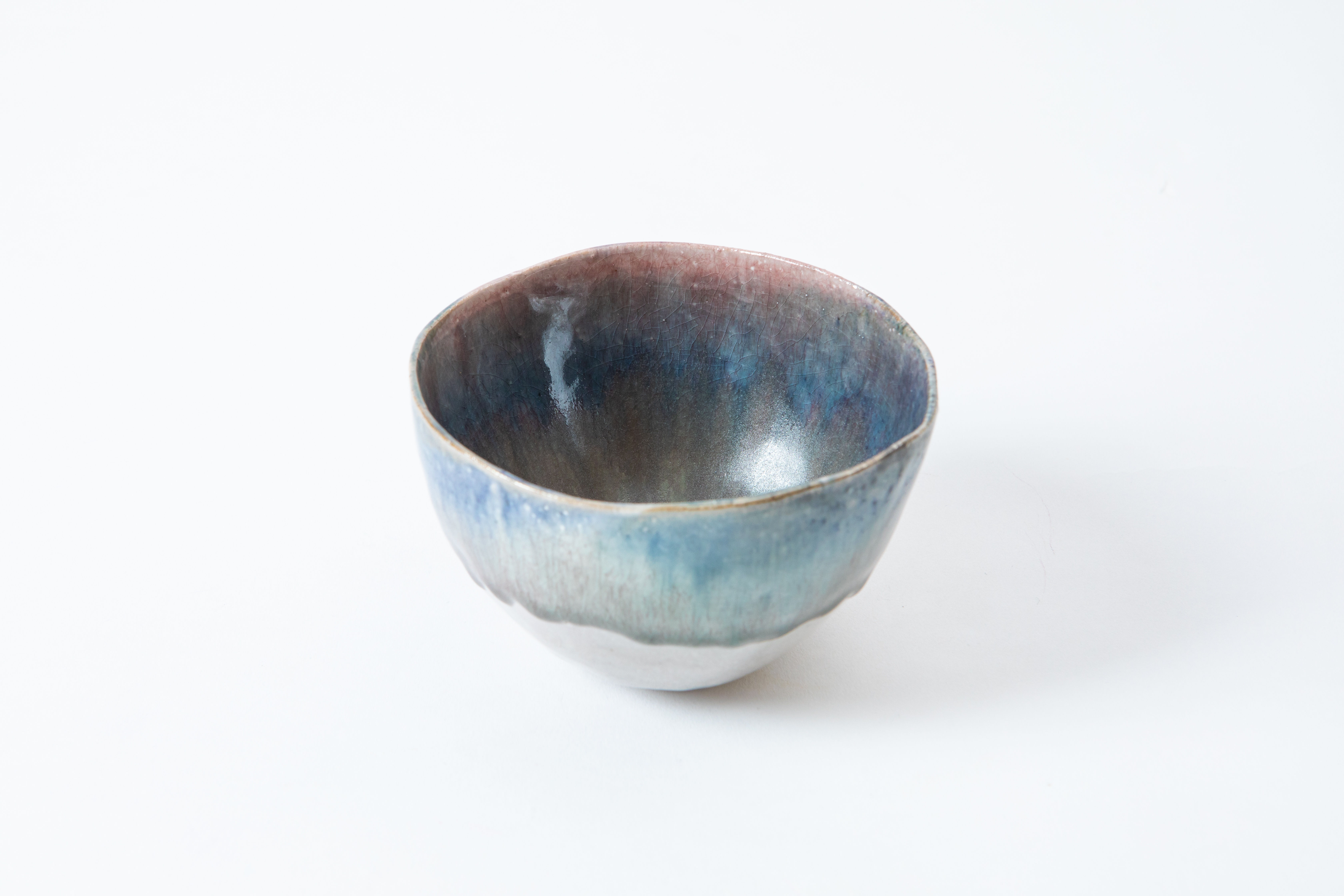 Yasushi Fujihira’s bowl is an homage to his father, Shin Fujihira, who was famous for his use of cinnabar glazes. Yasushi’s treatment of the cinnabar results in a supple candy-colored landscape that exudes a certain whimsy. The purples, reds, and blues create a fairytale waterfall alongside the form of the bowl that echos the joy of playing in nature during the spring and summer months.