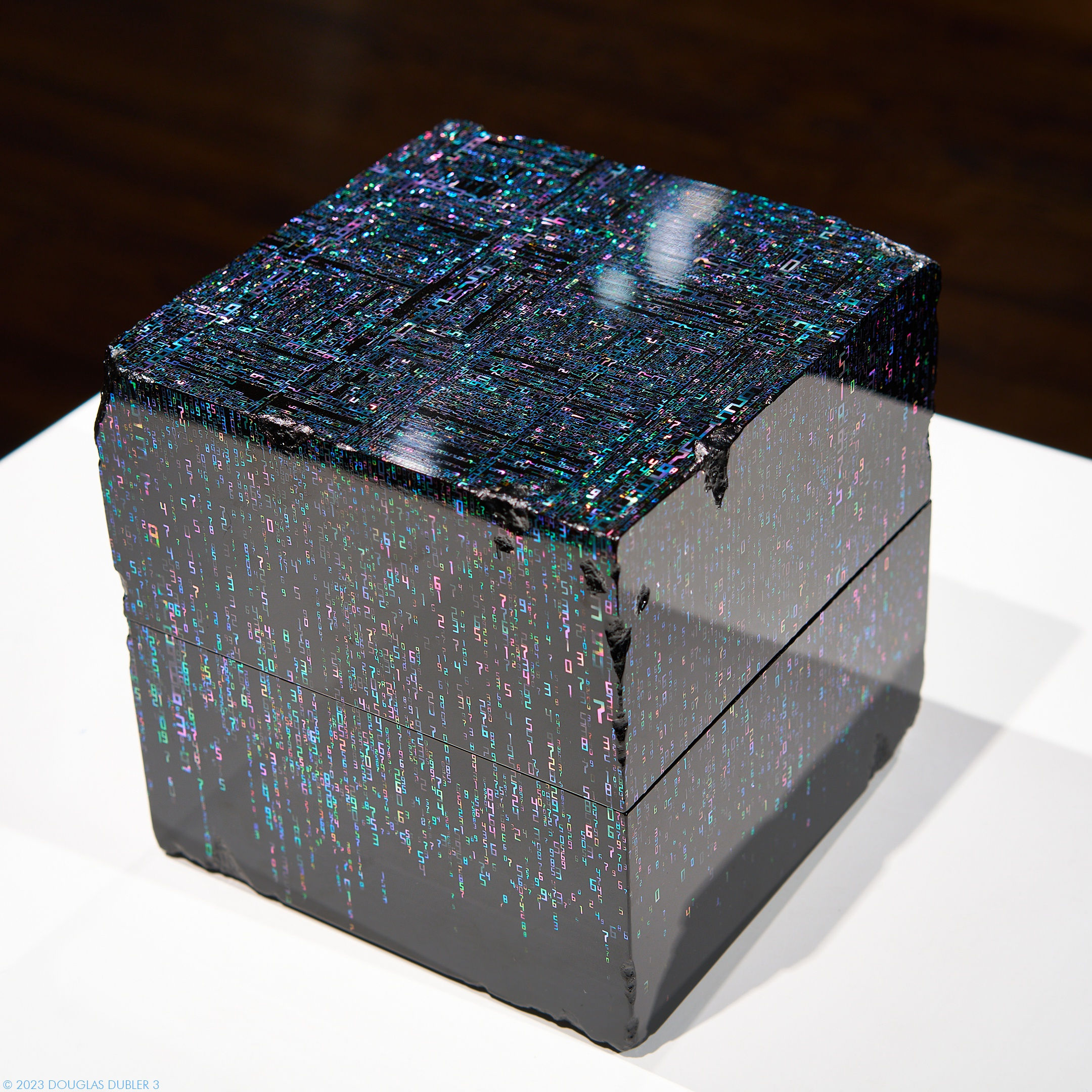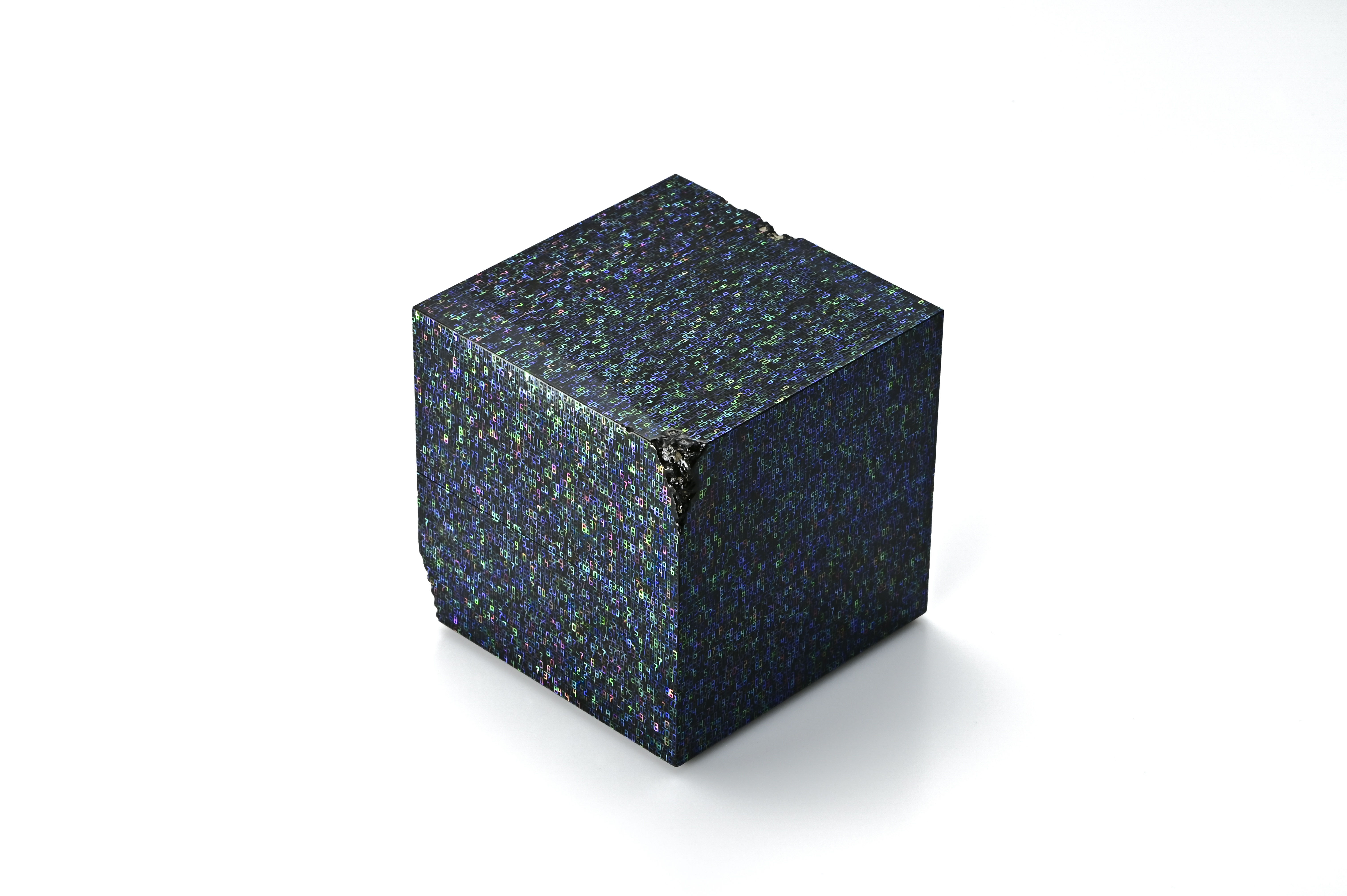 Zeshin gained international fame as his artworks were often recreations of all sorts of surfaces and shapes in lacquer. Terumasa Ikeda’s Error403 box includes extensive use of kawainuri, emphasizing the “error” aspects of the futuristic raden inlay. Ikeda uses kiso hinoki cypress for his lacquerwares, allowing light to pass through the ultra-thin wooden structure. This preparation permits Ikeda to create deep crevices in the box while still maintaining the lacquer illusion. The result is a science fiction-style time capsule that seems to have weathered an apocalypse yet to come.