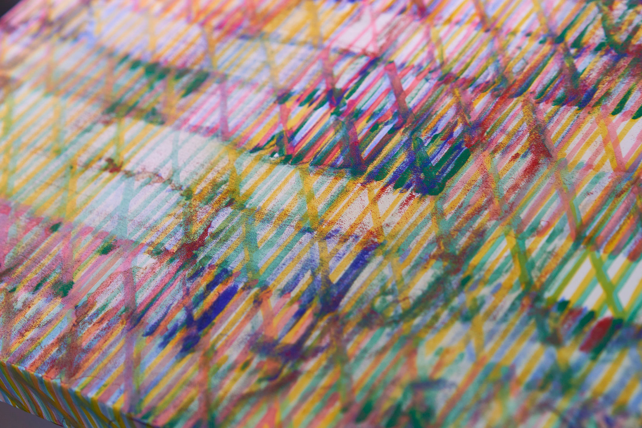 I think my work echoes elements of meditation; there is a certain similarity to sutra chanting as far as I am connecting simple actions to the medium of paper, rather than drawing emotions and scenery as they are. That may be what makes it meditative. The colors and materials I use are usually decided in advance according to my mood. Sometimes I change them at the last minute, but I avoid controlling the colors too much by looking at the painting. When I go to an art supply store, I see a lot of mizu-hi and iwaue (mineral pigments) lined up in a row, so I sometimes focus on the colors that strike me most.