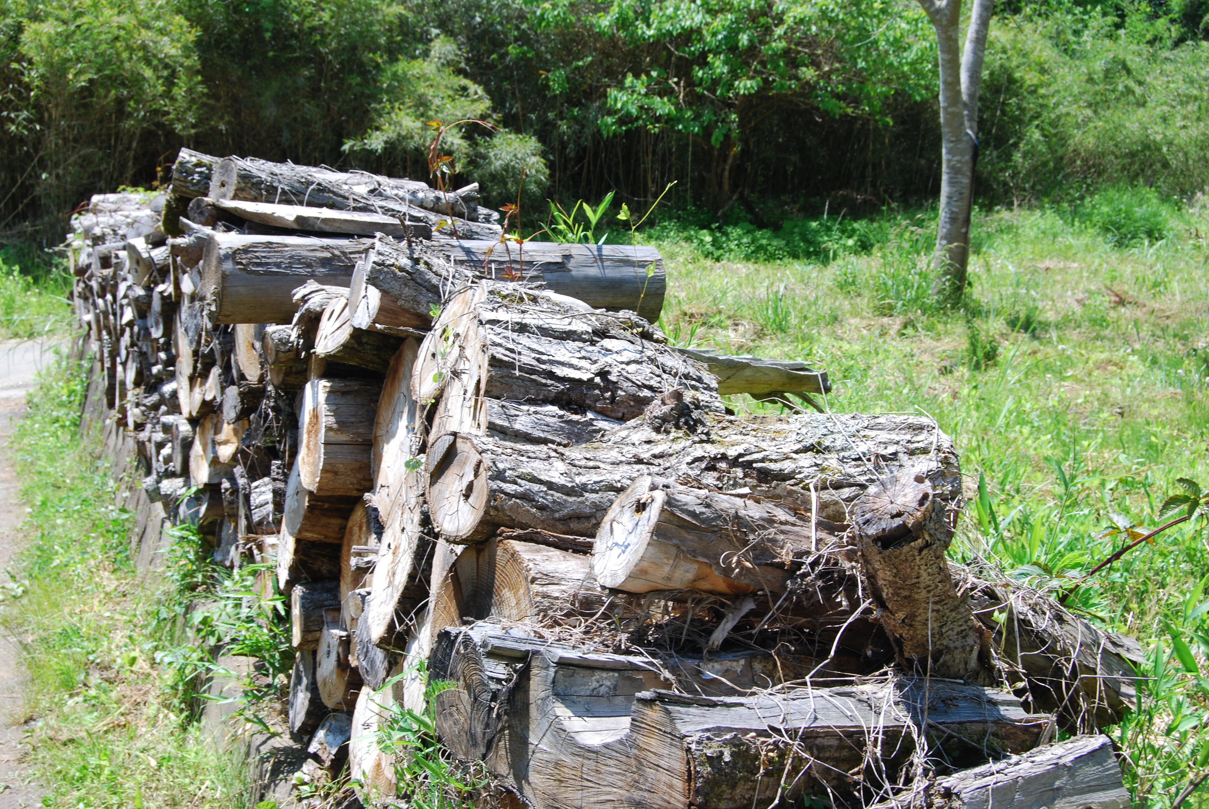 Hand-cut logs for kiln fuel.