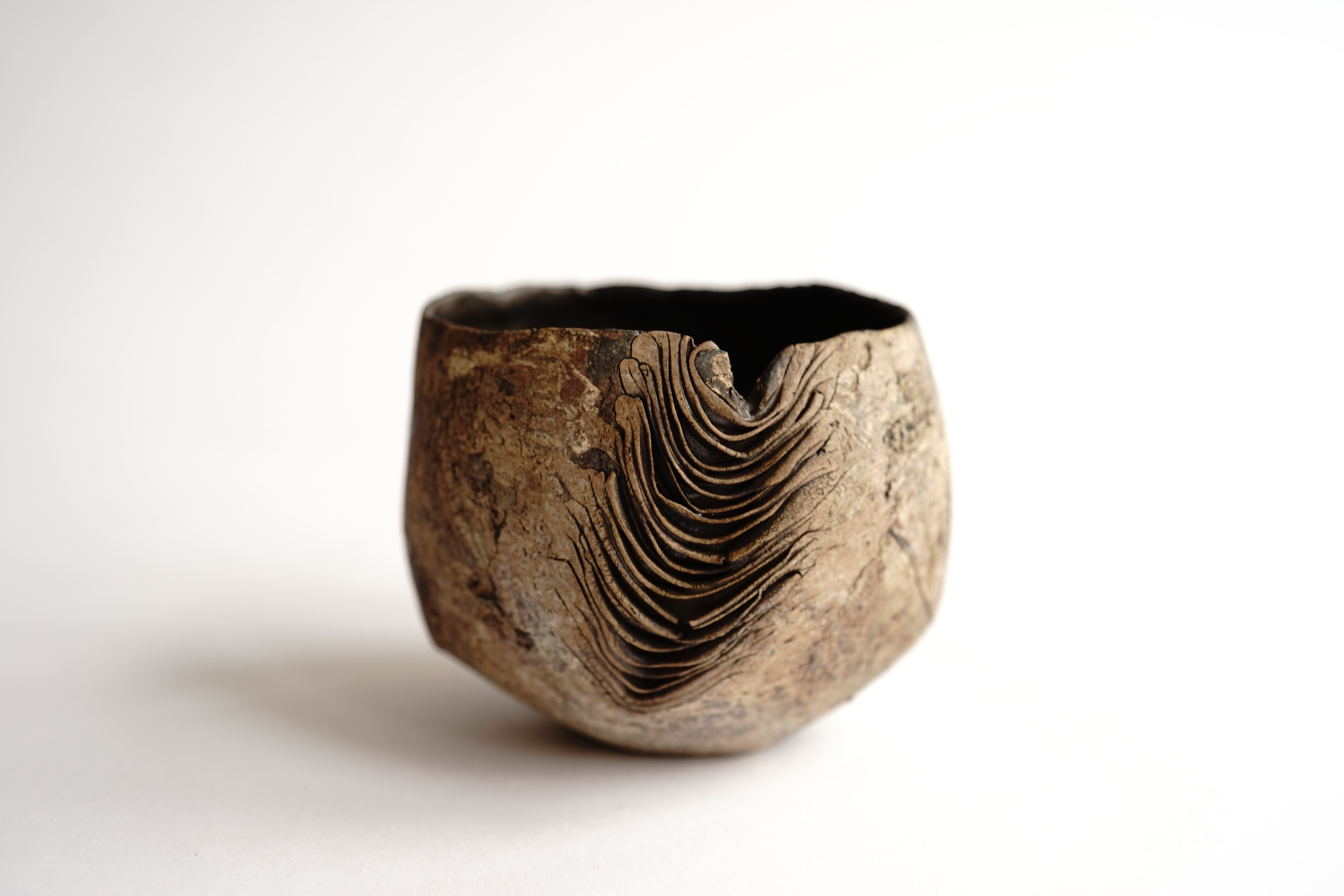 I focus on the shapes and textures. My chawan surfaces should reveal layers of time, and their forms invite the audience to experience a sense of spaciousness beyond the actual size of the tea bowl.