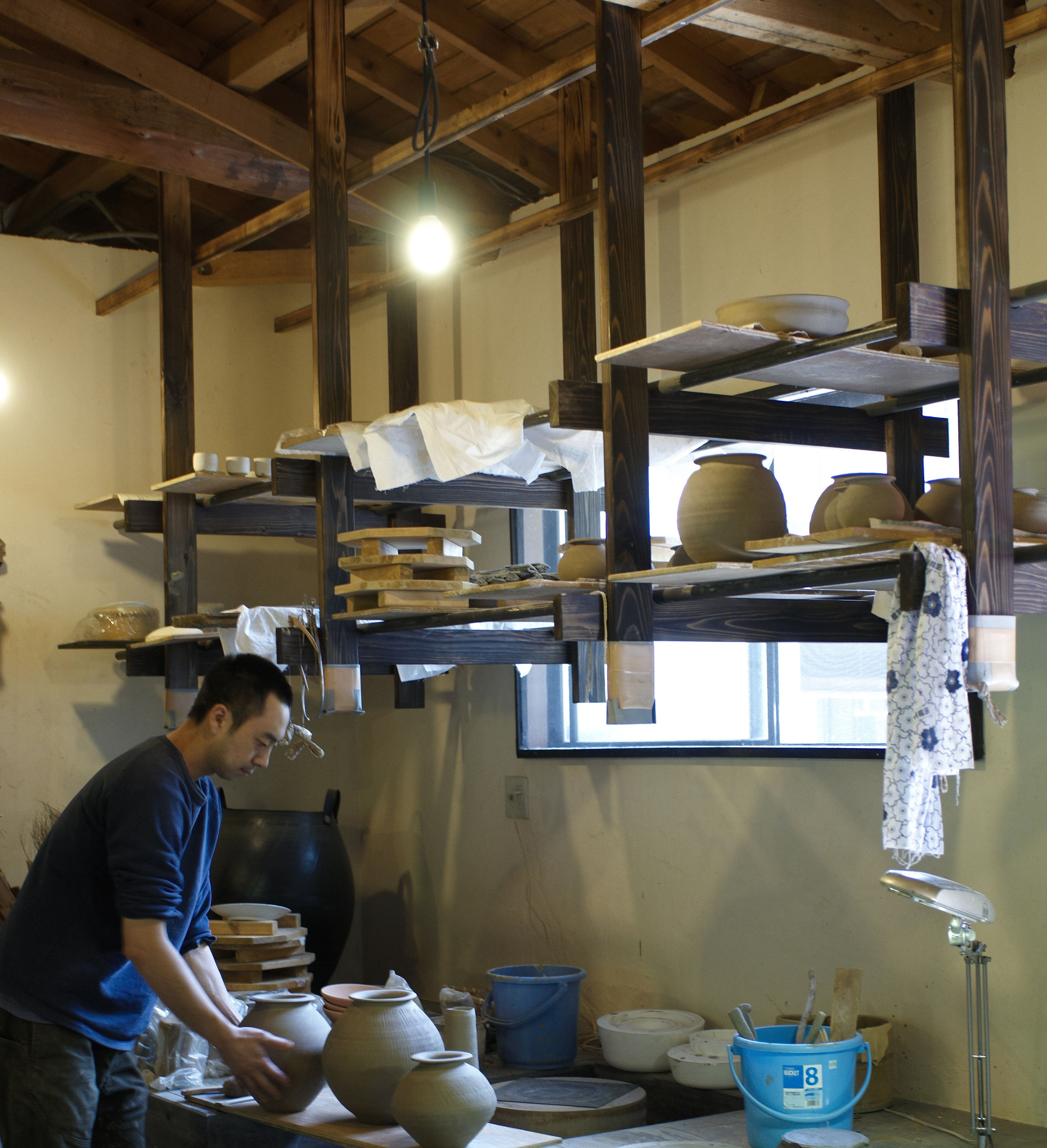 Morimitsu Hosokawa working at his kiln.