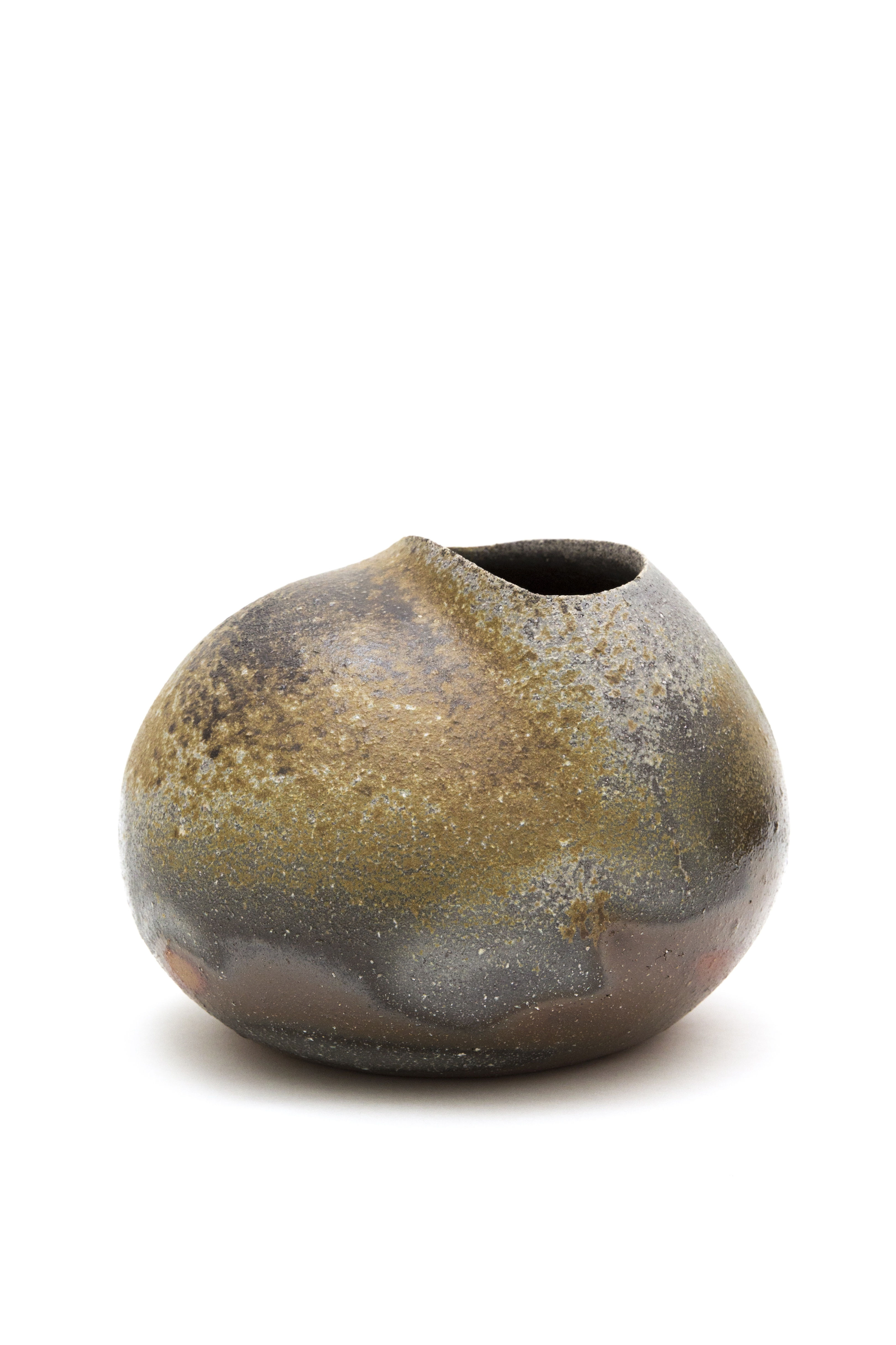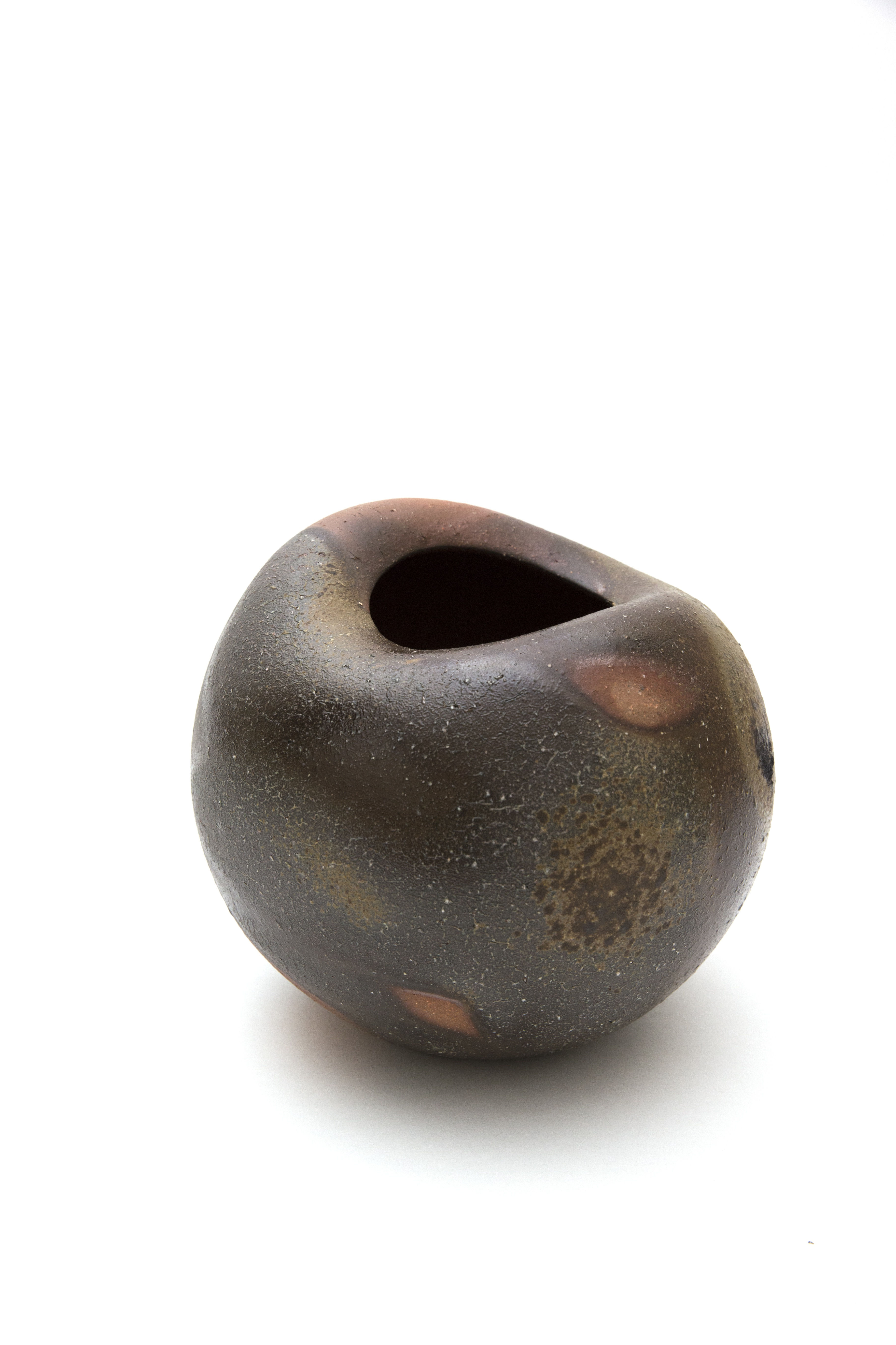 Masahiko Kondo’s fantastic wood fired forms are whimsical and earthy. The rounded form of C19040, with an offset opening and abrupt mouth, feels more than ceramic.
