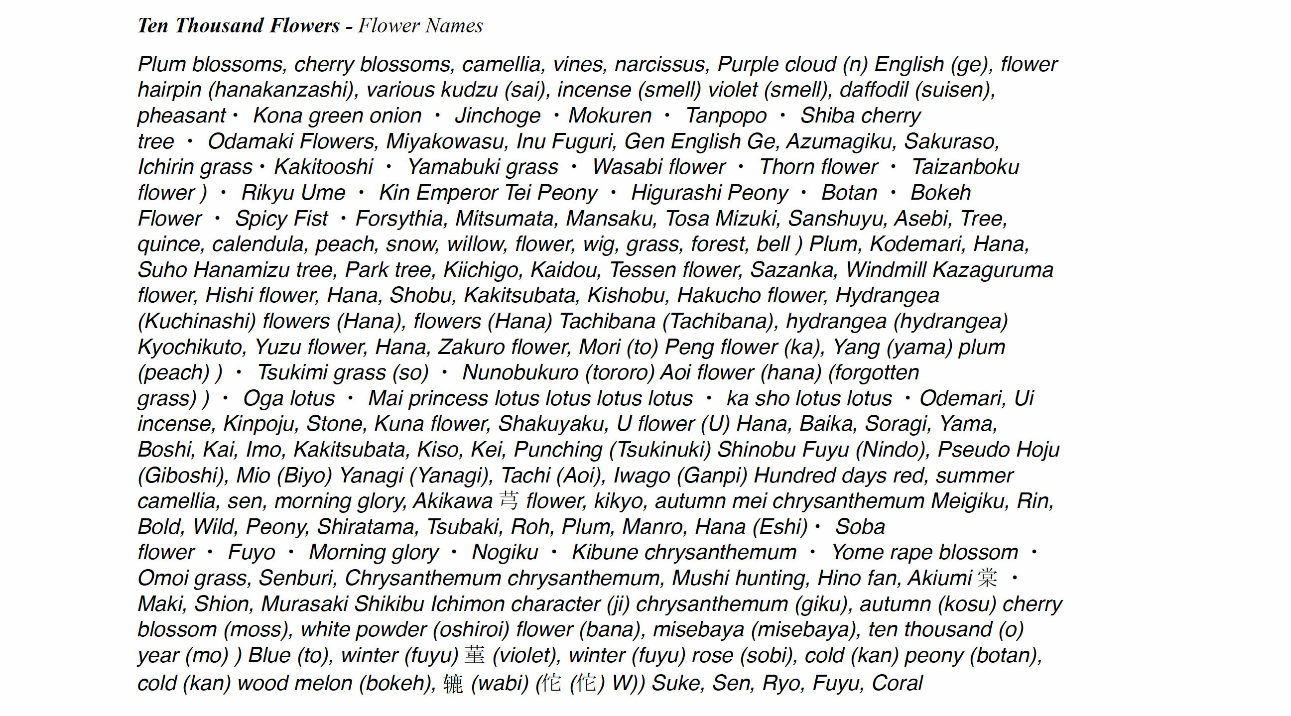 "Ten Thousand Flowers is a work that expresses the greatness and beauty of the vitality of plants.