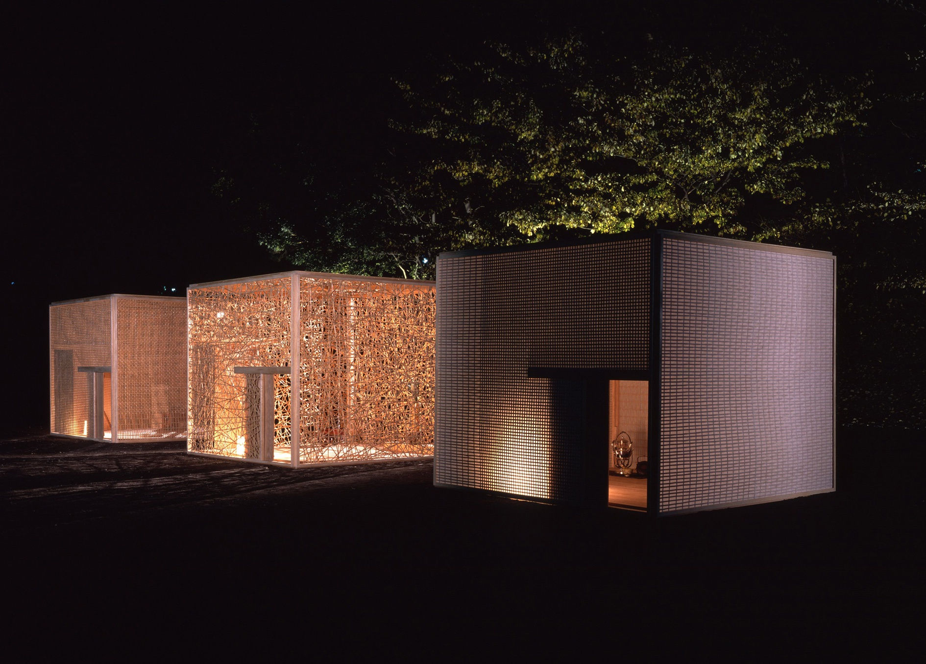 Shigeru Uchida designed three different structural forms of tea houses: Ji-an, the house of perception; So-an, the home of composition; and Gyo-an, the place of memories. Built-in bamboo and Japanese cypress as the base. They can be dismantled and re-erected in various locations. When one enters the tranquil space, they are gently wrapped like a bird in a nest. The safe space blankets the visitor with a calm and serene atmosphere.